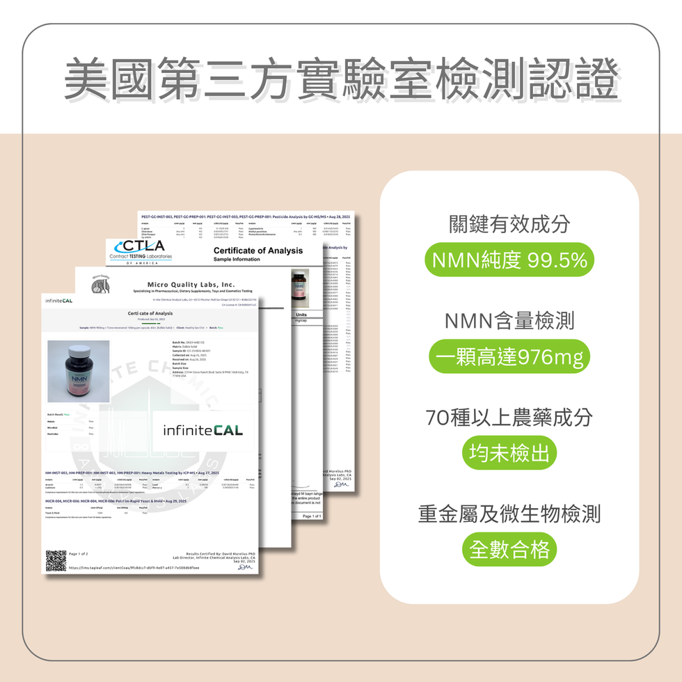✅高純度NMN|99%+ 高純度,經專業檢測,品質有保 障